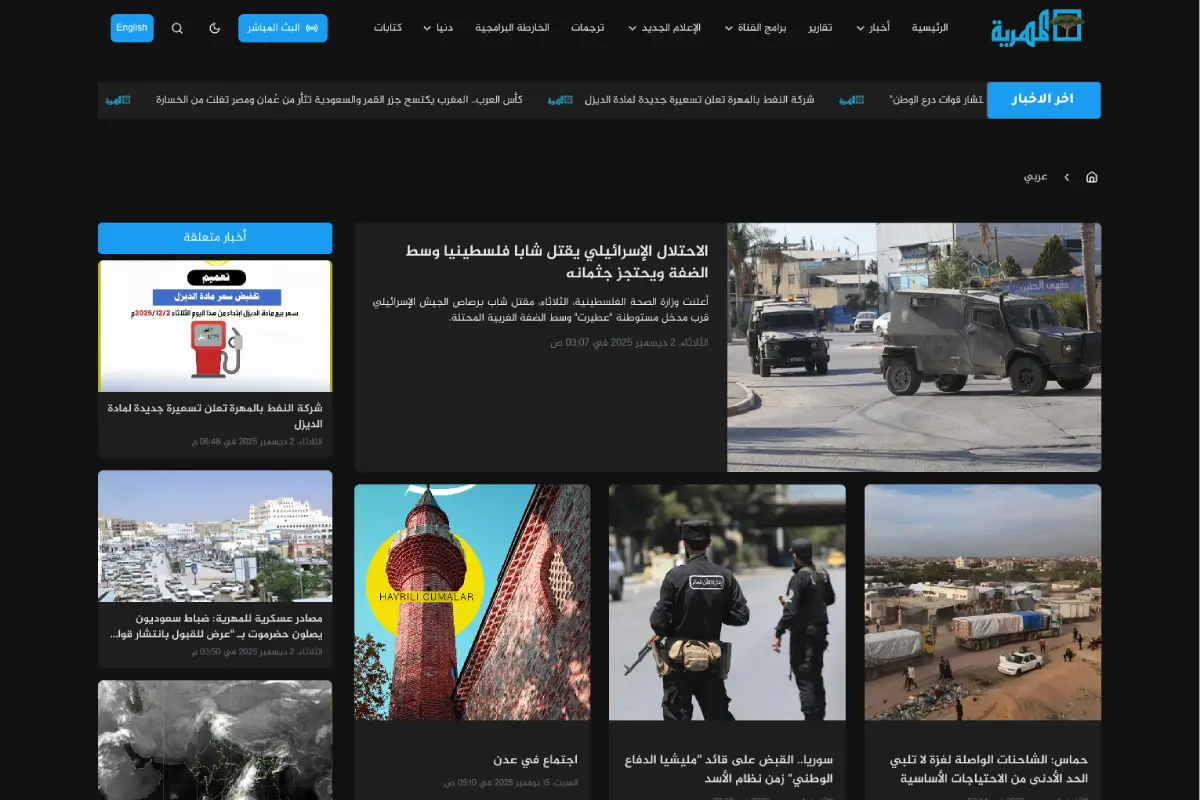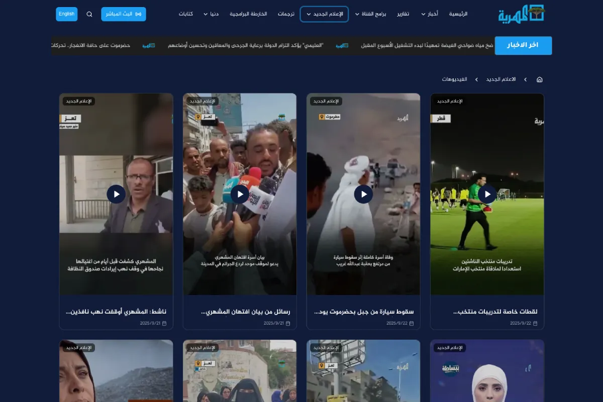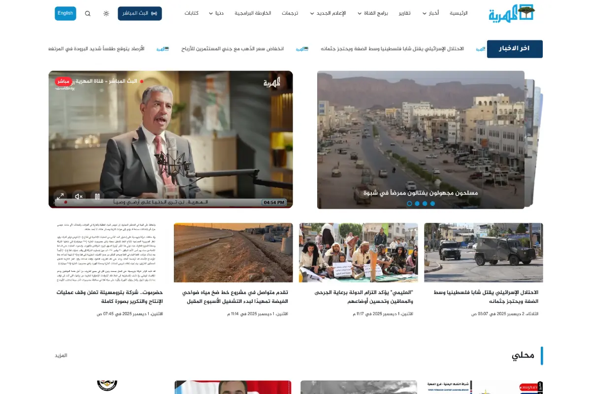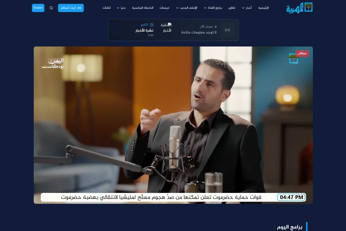 Almahriah Net is the integrated digital interface for Almahriah Satellite Channel, positioning itself as a comprehensive media platform focused on Yemeni affairs in all their dimensions. The platform covers breaking news and local/international reports while offering a rich interactive experience. Users can watch live broadcasts, access a vast library of diverse TV programs (social, political, dramatic, religious), and easily view the full program schedule.